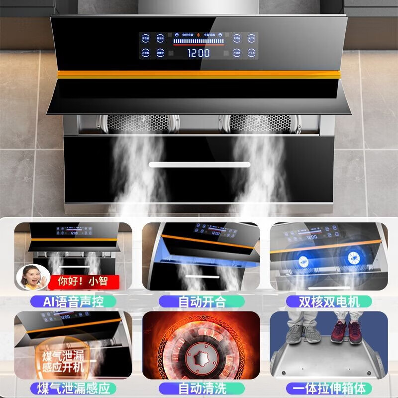 家用厨房大吸力吸油烟机双电机侧吸式自动清洗脱排抽油烟机燃气灶套餐烟机 9