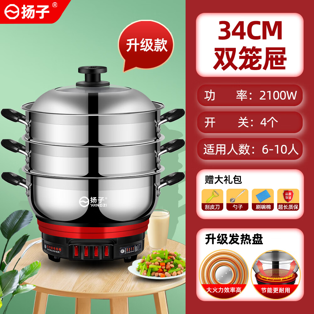 多功能电热锅家用电炒锅电火锅电煮锅电蒸锅料理锅一体式大功率多用途炒锅