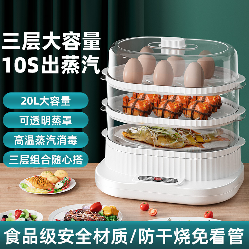 电蒸锅家用多功能一体蒸汽锅三层大容量多层蒸锅电蒸箱